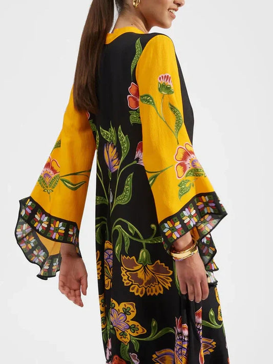 Off-Shoulder Palm Leaf Print Holiday Style Floral Dress